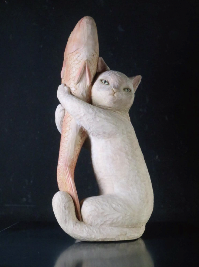福山智子さんの木彫作品、 それまでは、 ほのぼのとした、 かわいい作品を作る方と認識していました。ある京都での彼女の個展を見た時、 とても力強い魅力のある大きな作品に出合いました。 意志の強い、こういう一面のある人と改めて思い直しました。 その後すぐに、 おおやフォ ー ク ー トでの大賞をはじめ、 色々な所で作品の要望の多い作家です。 今回、 どのような作品が登場するのか、 とても楽しみにしています。